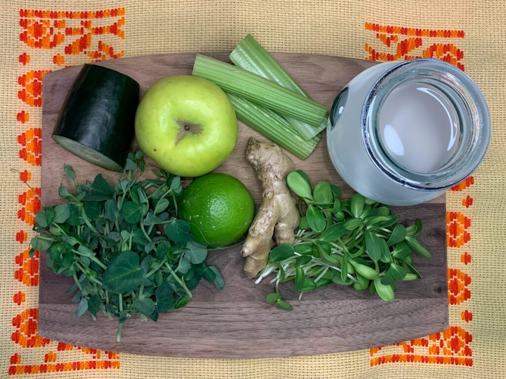 Una excelente forma de inciar el día es con este delicioso y energizante jugo verde con jengibre. Los jugos verdes son una excelente fuente de vitaminas, minerales y antioxidantes, esenciales para el buen funcionamiento del organismo. Su consumo regular puede fortalecer el sistema inmunológico, gracias a la alta concentración de vitamina C y otros nutrientes.